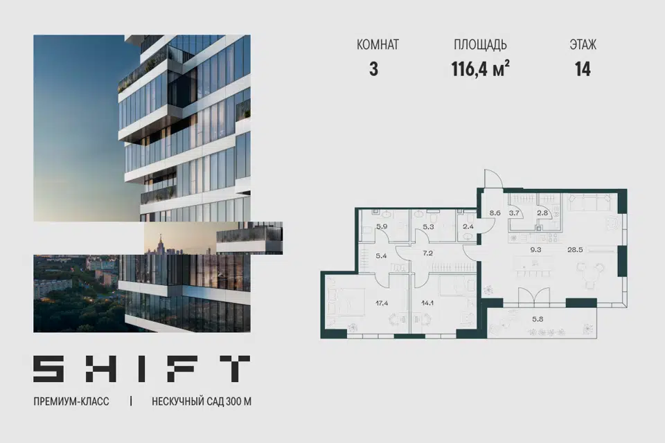 3-комн. кв., 116.4 м², 14/20 этаж
