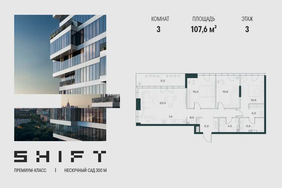 3-комн. кв., 107.6 м², 3/20 этаж