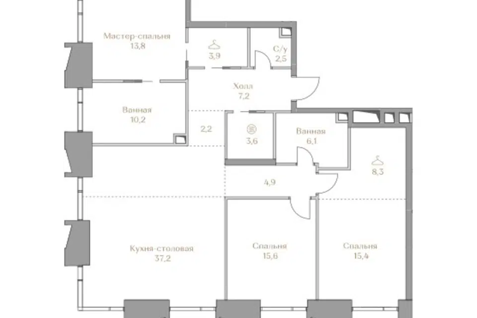3-комн. кв., 105.2 м², 3/13 этаж