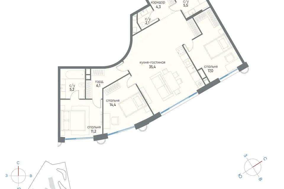 Купить трехкомнатную квартиру в Москве в районе Хорошёво-Мнёвники