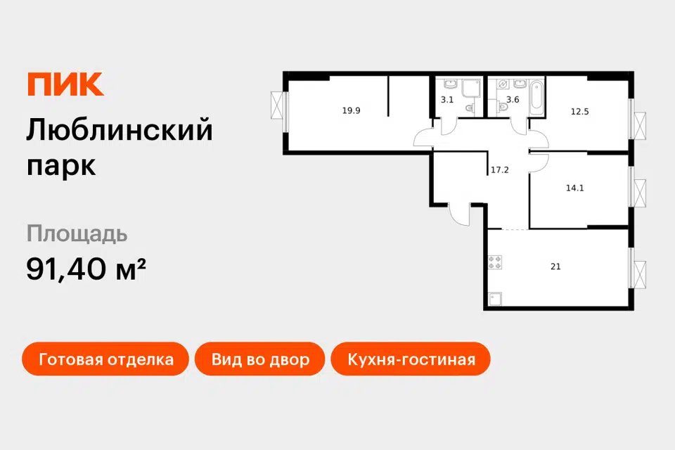 3-комн. кв., 91.4 м², 2/25 этаж