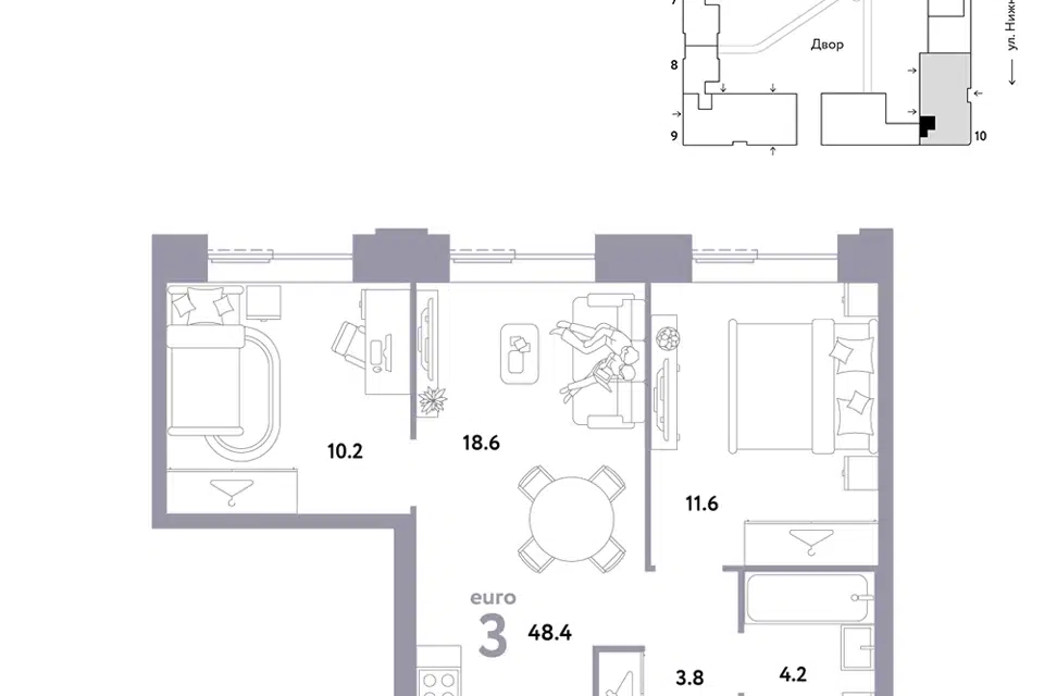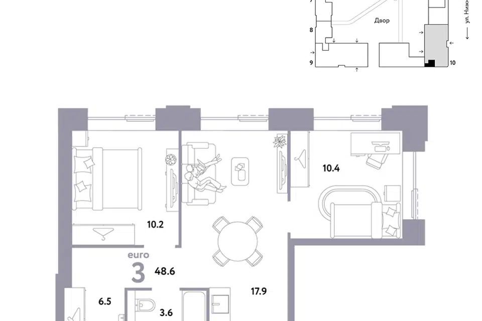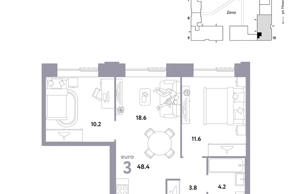 3-комн. кв., 48.6 м², 3/38 этаж