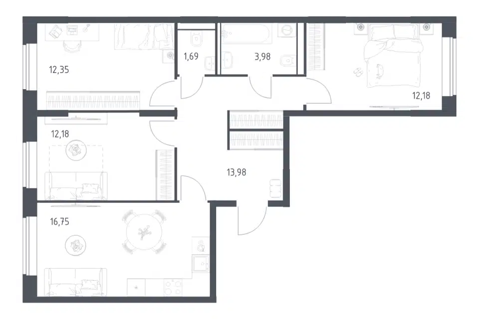 3-комн. кв., 74.7 м², 11/16 этаж