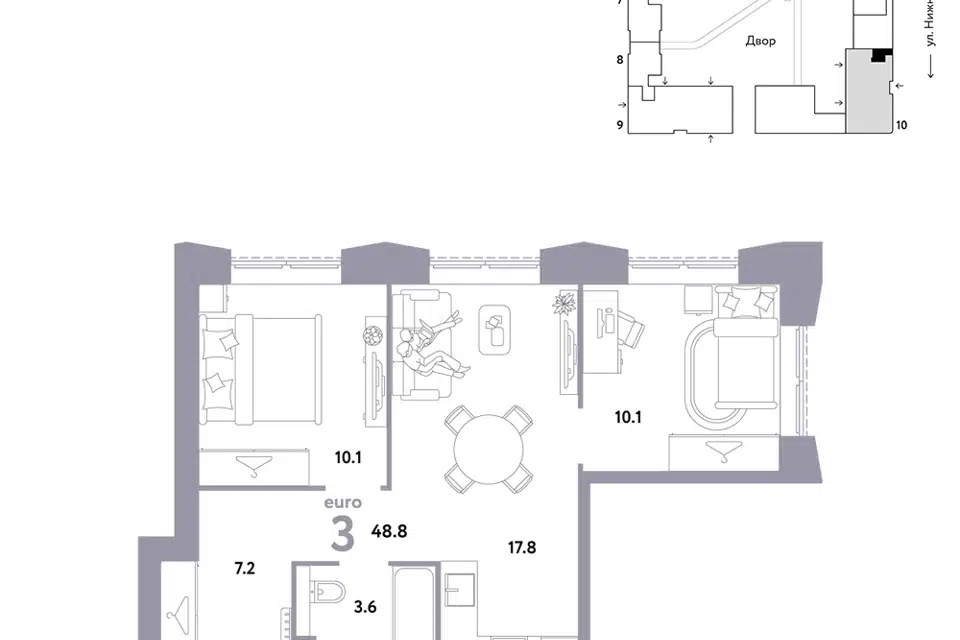 3-комн. кв., 48.8 м², 3/38 этаж