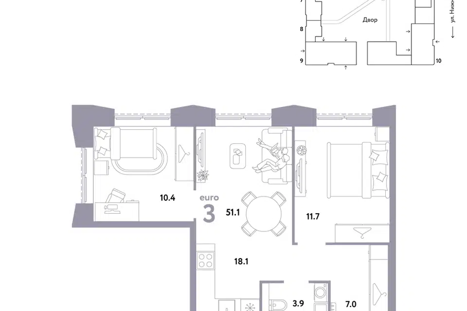 3-комн. кв., 51.1 м², 17/38 этаж