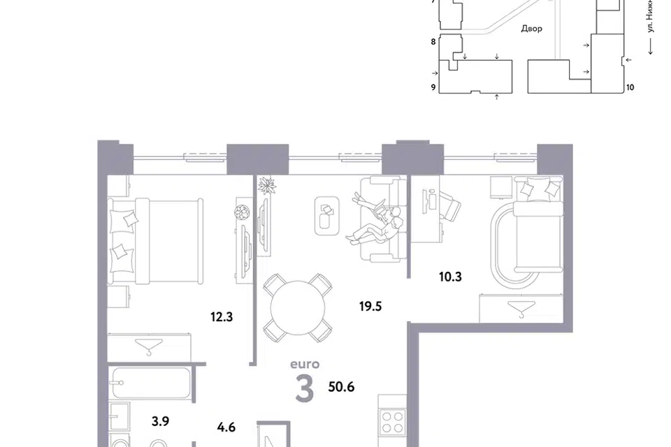 3-комн. кв., 50.6 м², 2/38 этаж