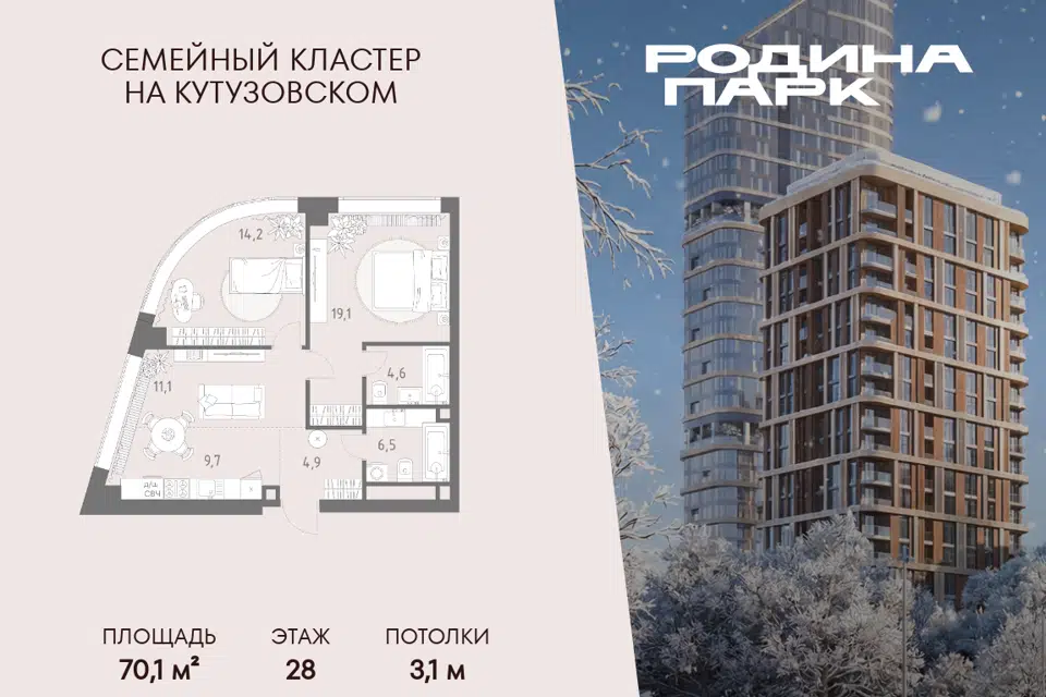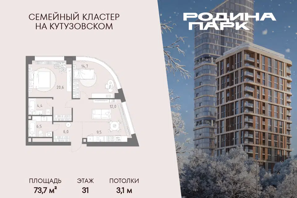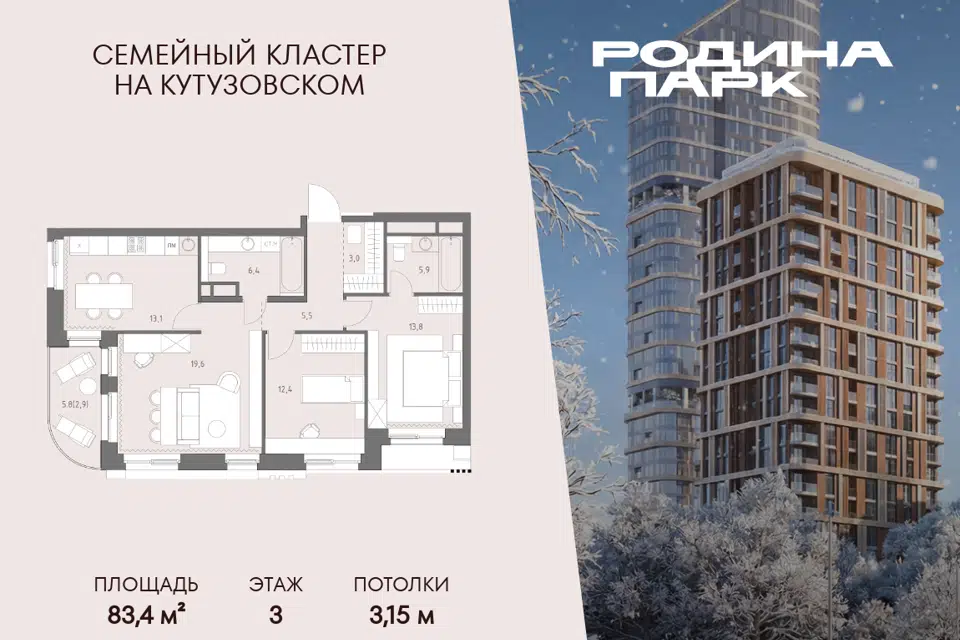 3-комн. кв., 49.5 м², 13/31 этаж