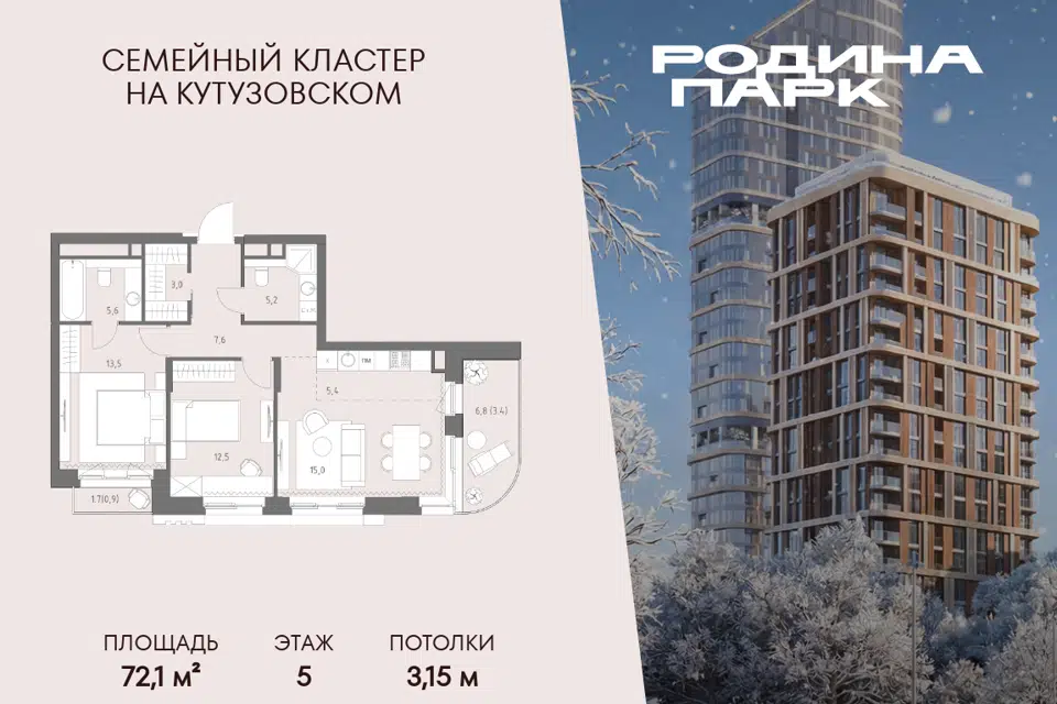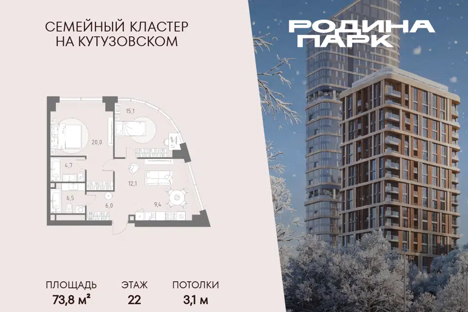 3-комн. кв., 72.5 м², 22/29 этаж