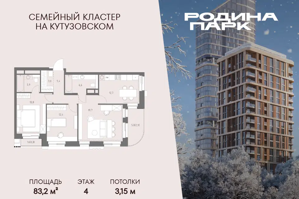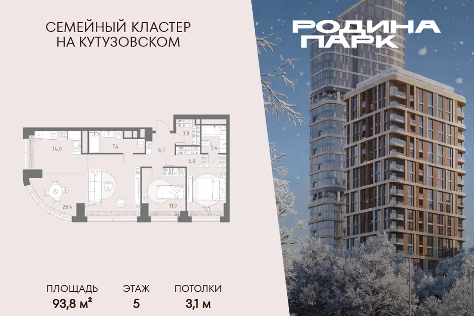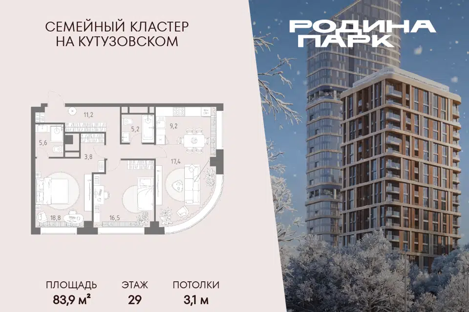 3-комн. кв., 90.6 м², 4/17 этаж