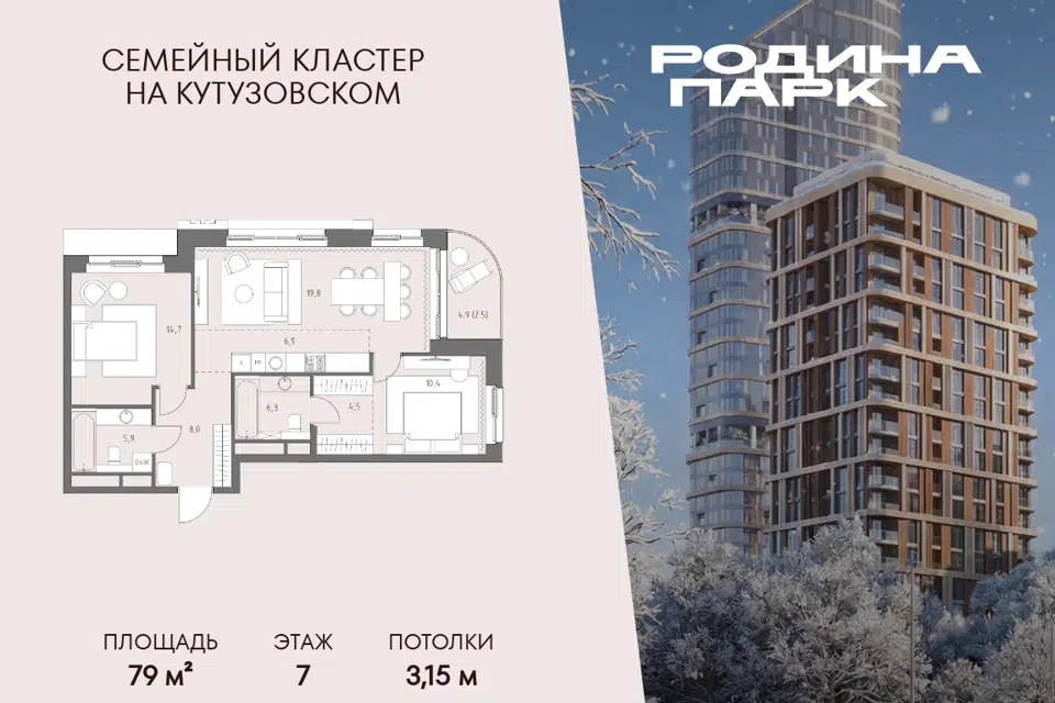 3-комн. кв., 74.5 м², 15/17 этаж