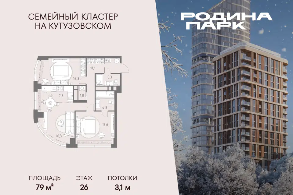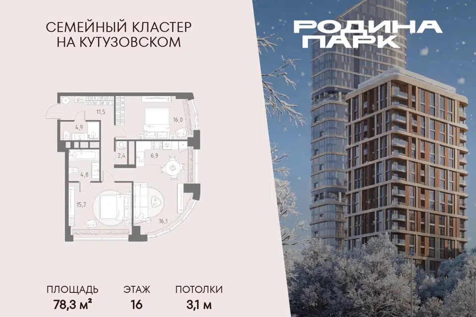 3-комн. кв., 118.8 м², 16/24 этаж