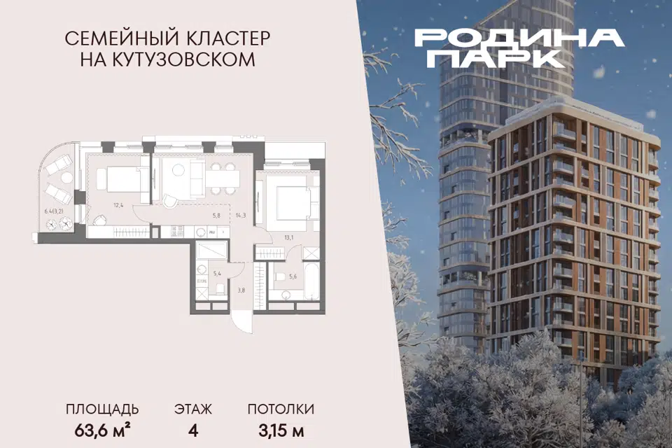3-комн. кв., 64 м², 4/5 этаж