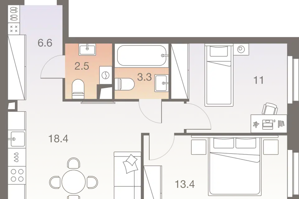 3-комн. кв., 78.5 м², 18/26 этаж