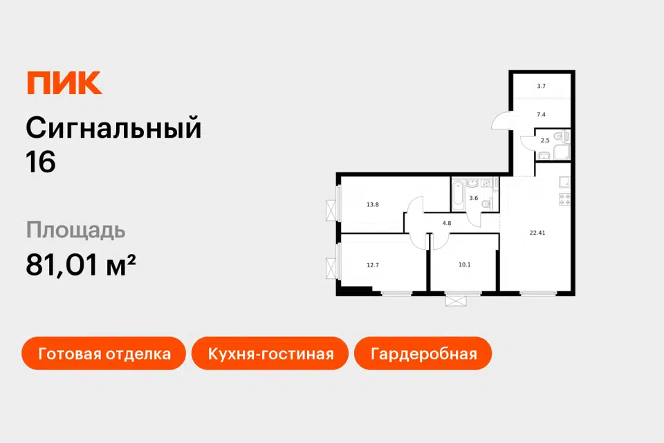 3-комн. кв., 81.01 м², 4/33 этаж