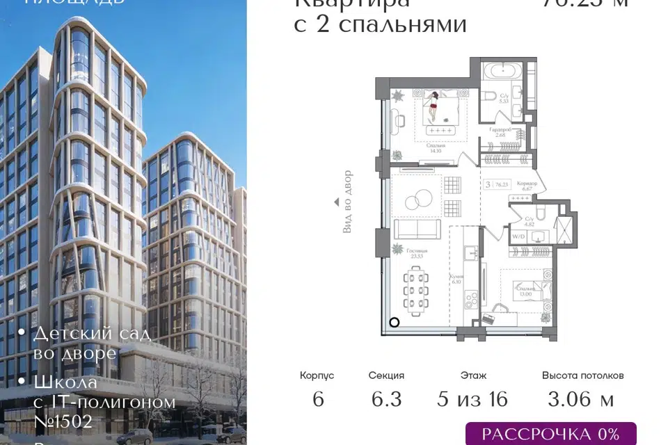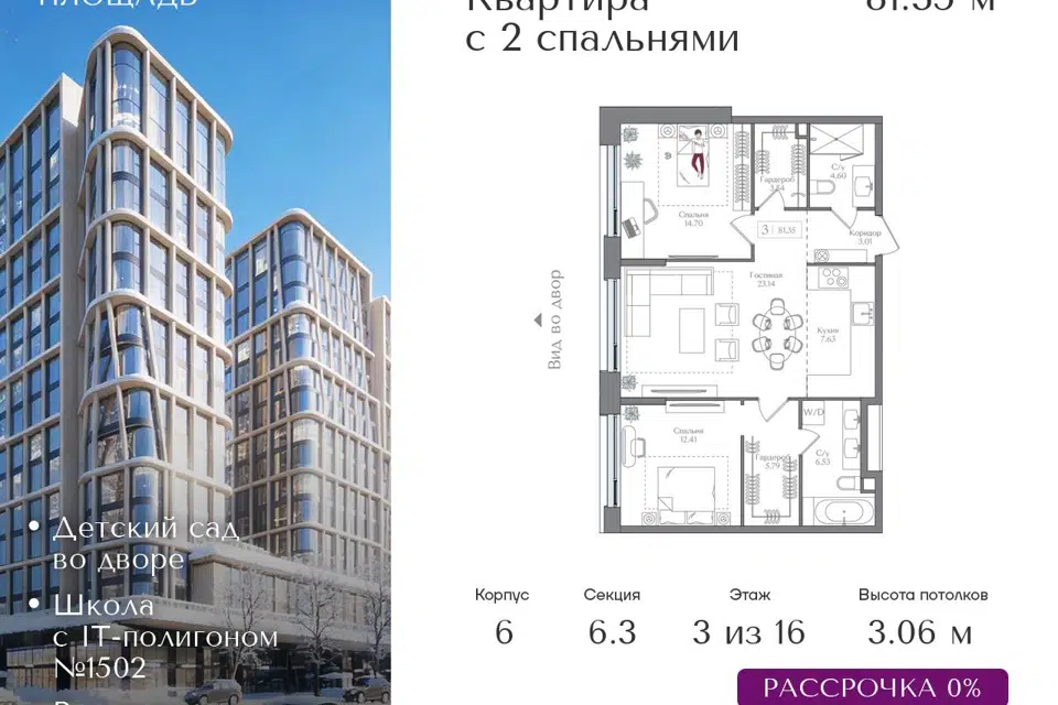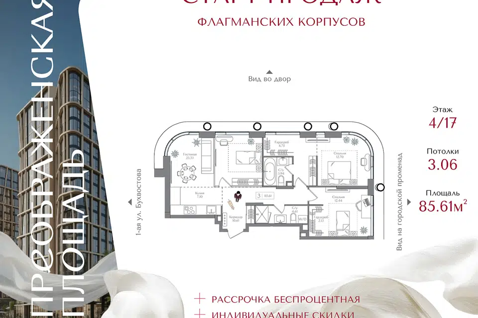3-комн. кв., 85.61 м², 4/16 этаж