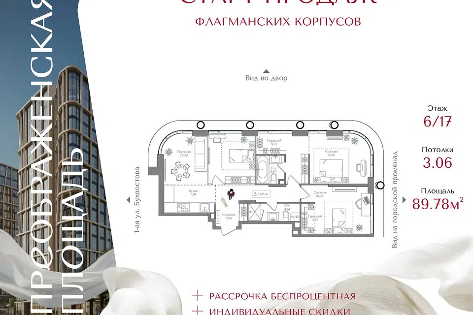 3-комн. кв., 89.78 м², 6/16 этаж