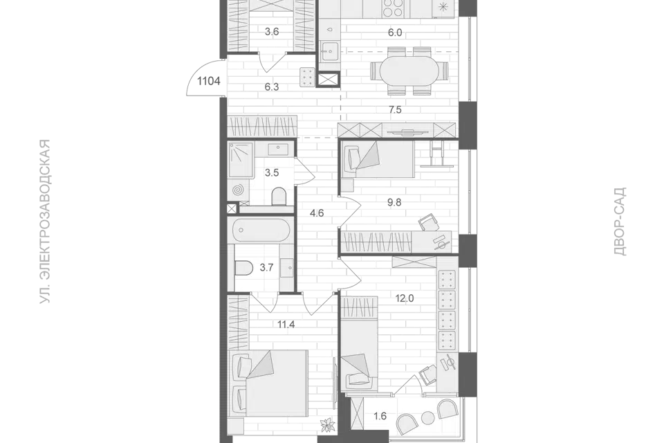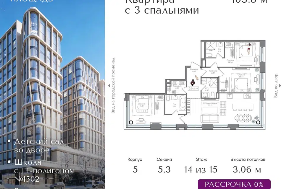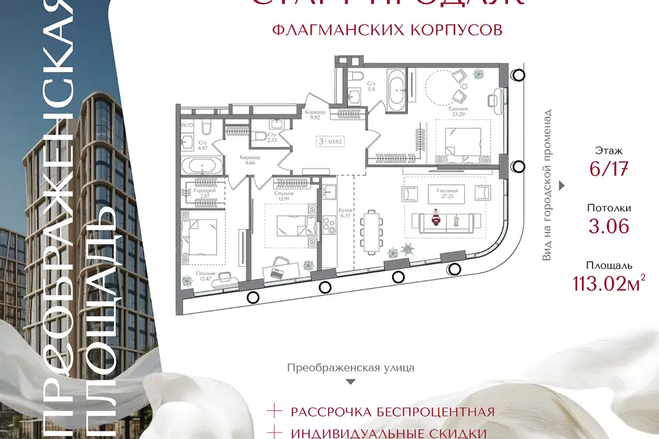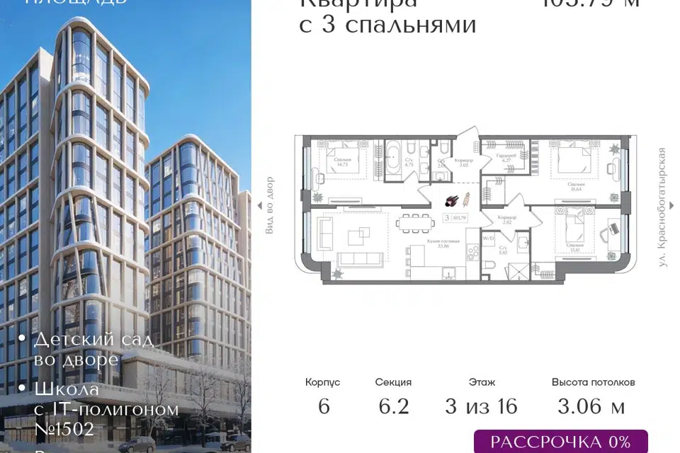 3-комн. кв., 113.02 м², 6/16 этаж