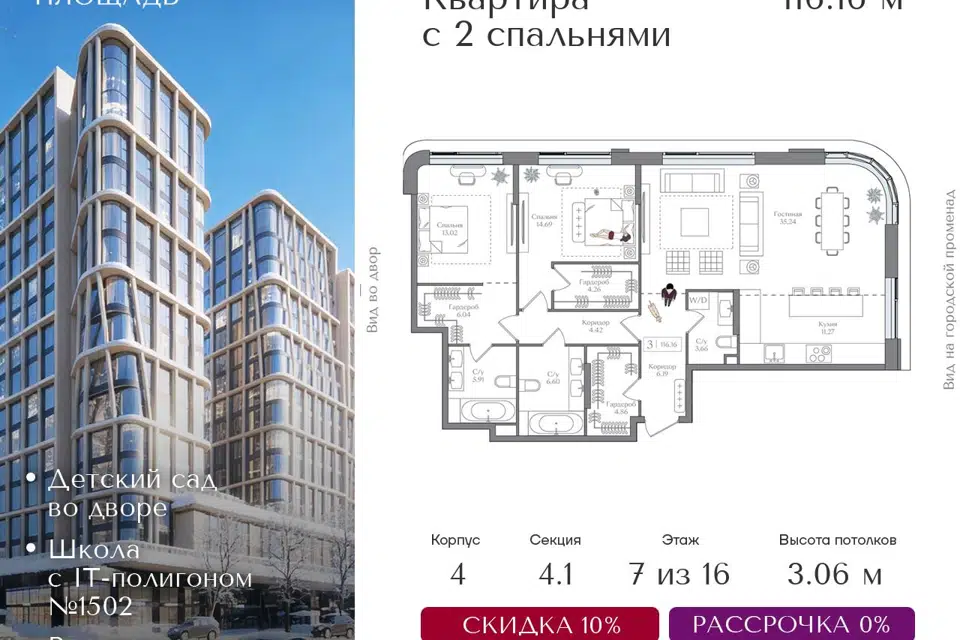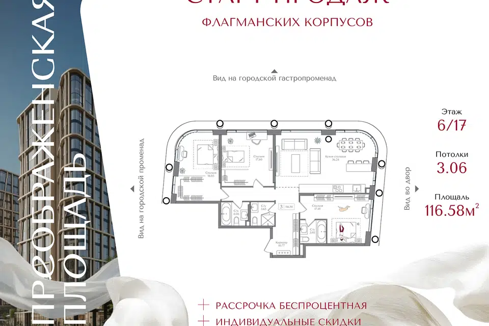 3-комн. кв., 116.58 м², 6/16 этаж