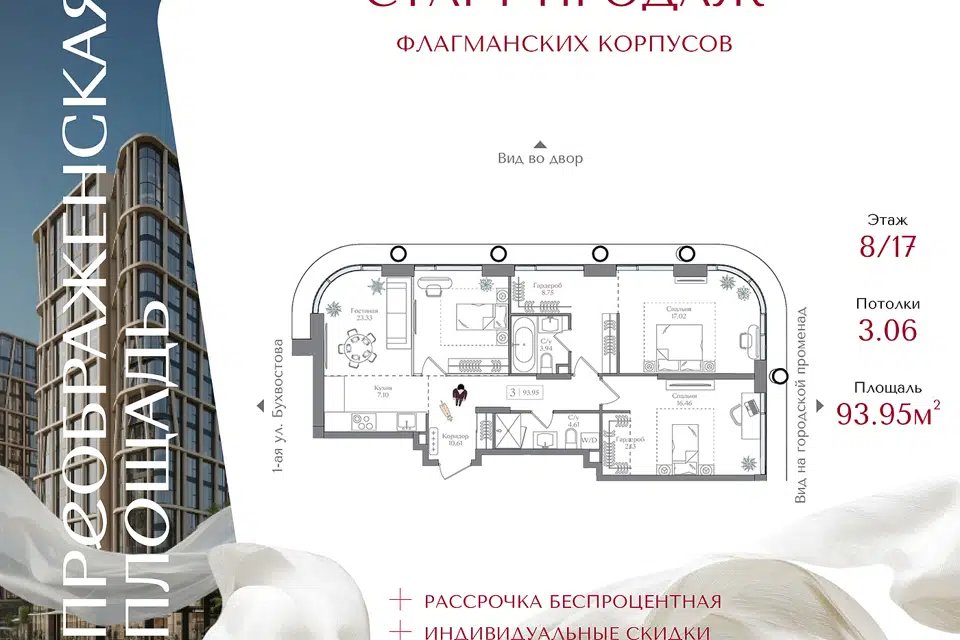 3-комн. кв., 93.95 м², 8/16 этаж