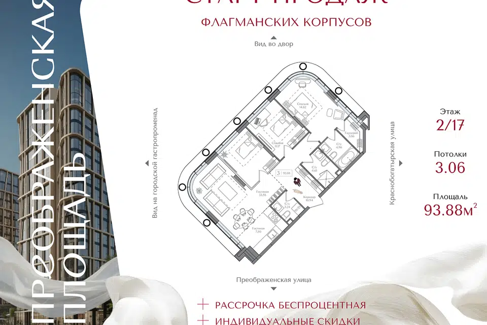 3-комн. кв., 93.88 м², 2/16 этаж