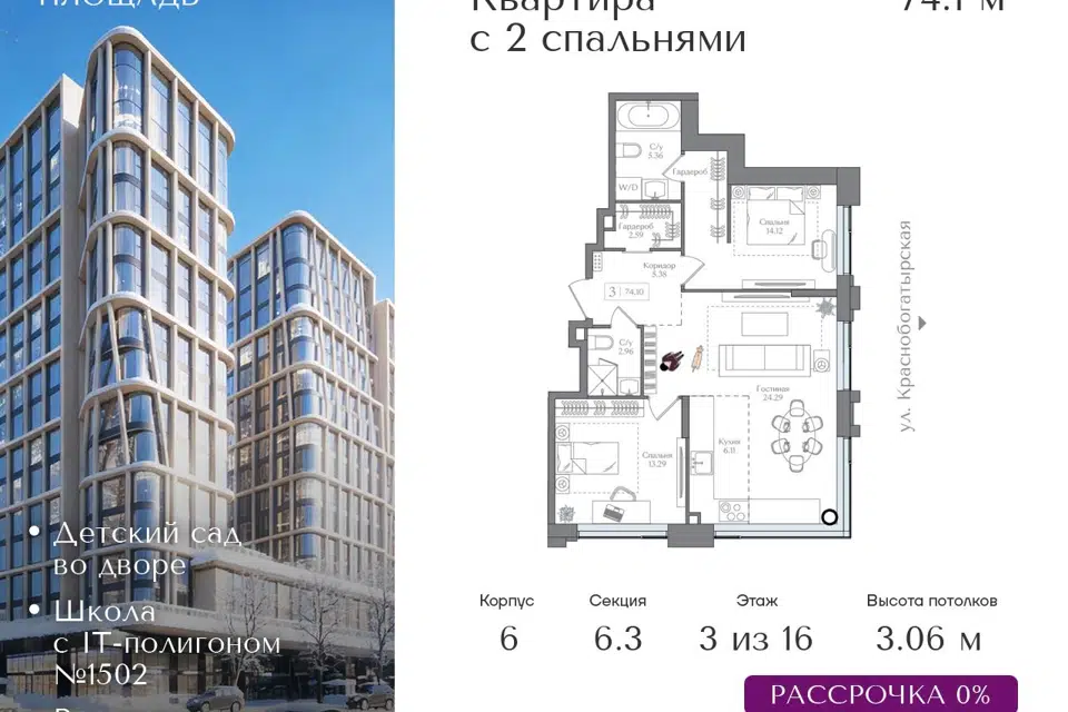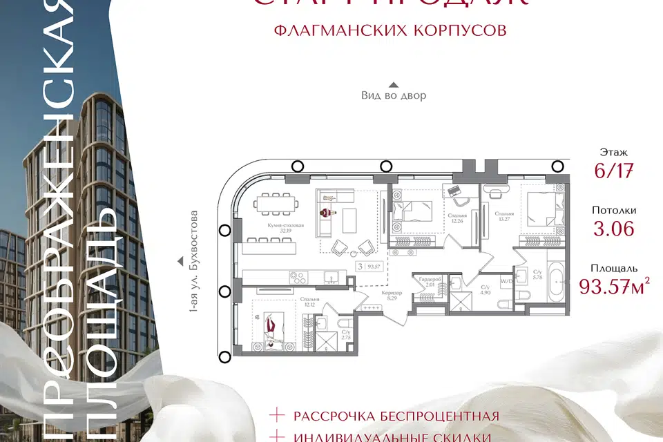 3-комн. кв., 93.57 м², 6/16 этаж