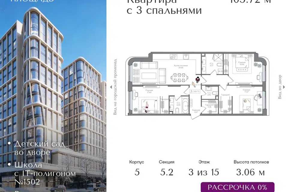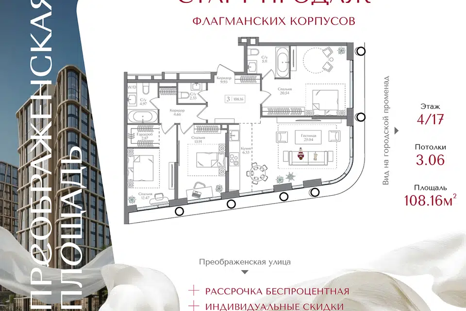 3-комн. кв., 108.16 м², 4/16 этаж