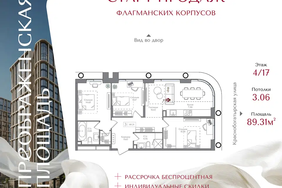 3-комн. кв., 89.31 м², 4/16 этаж