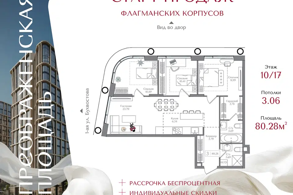 3-комн. кв., 80.28 м², 10/16 этаж