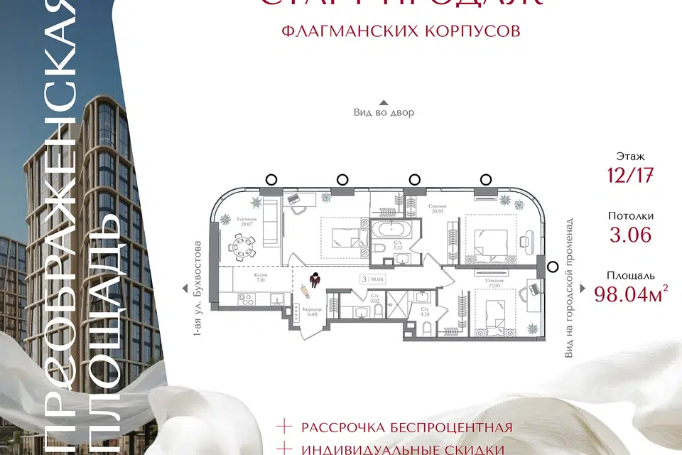 3-комн. кв., 98.04 м², 10/16 этаж