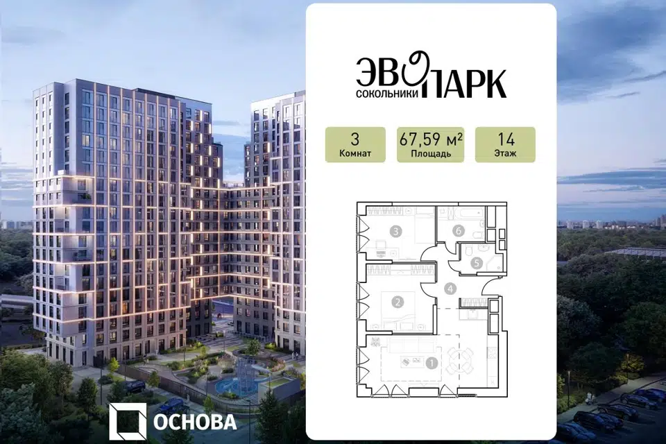 3-комн. кв., 67.59 м², 14/21 этаж