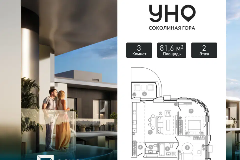 3-комн. кв., 81.2 м², 6/8 этаж