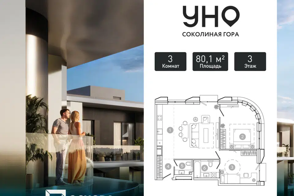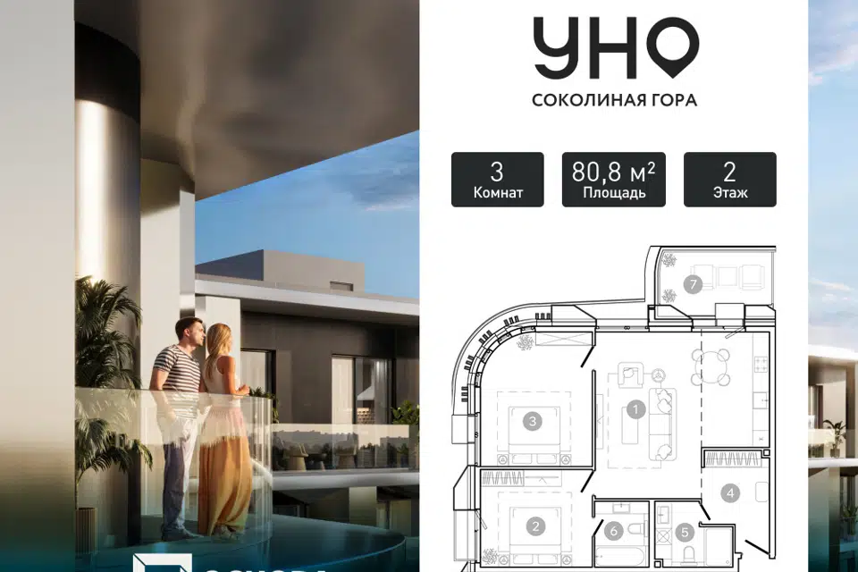 3-комн. кв., 80.7 м², 5/8 этаж