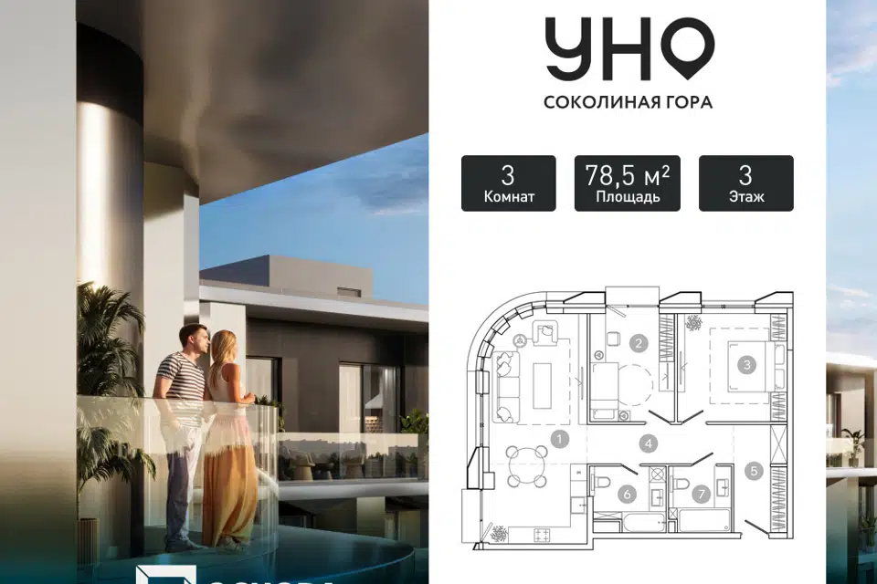 3-комн. кв., 77 м², 6/24 этаж