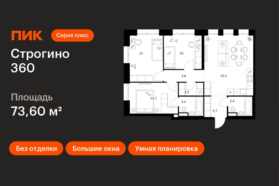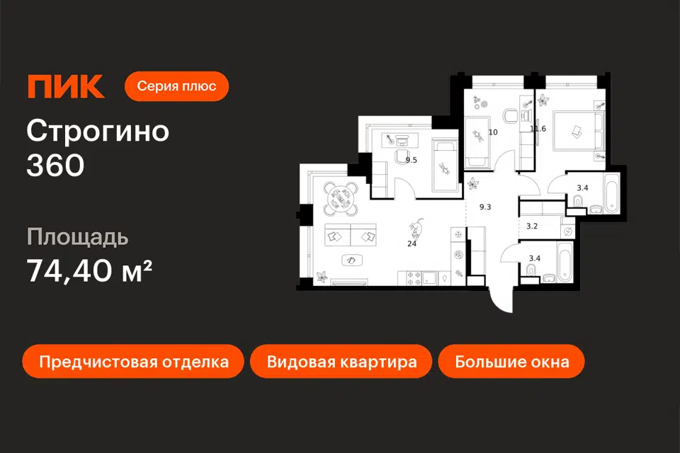 3-комн. кв., 73.8 м², 11/16 этаж