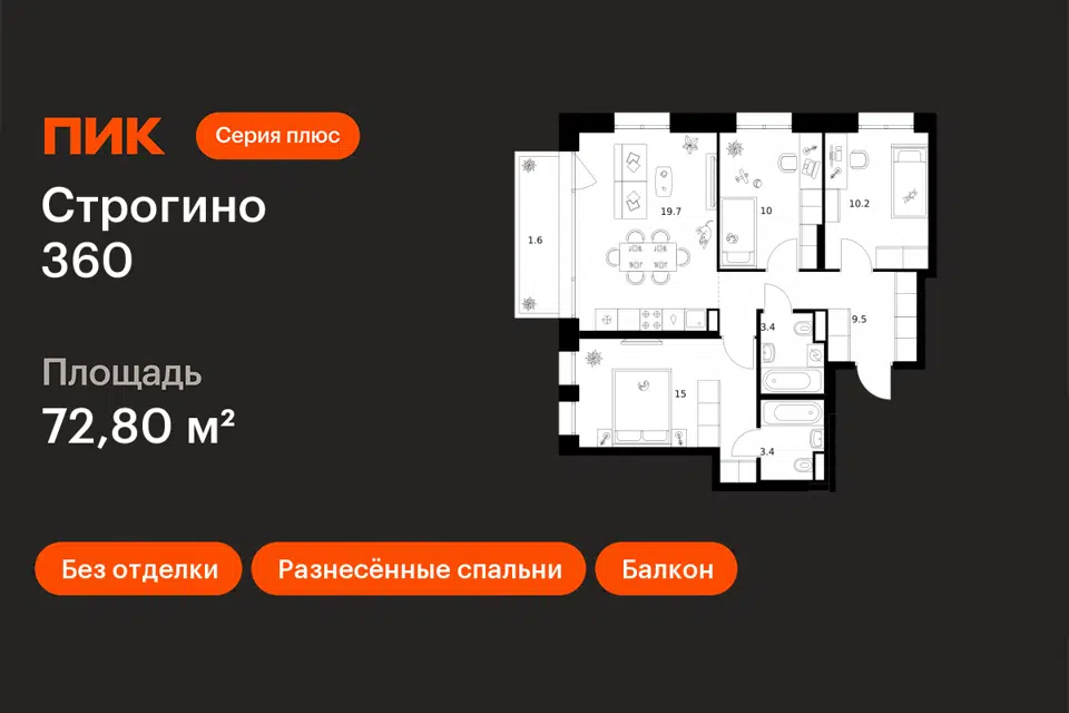 3-комн. кв., 72.8 м², 7/30 этаж