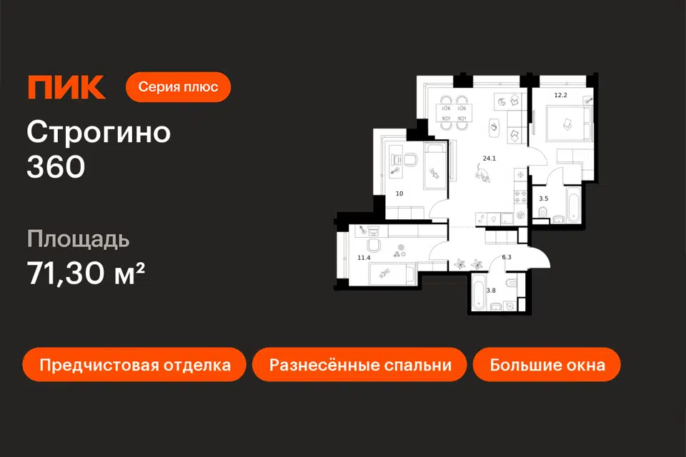 3-комн. кв., 71.3 м², 17/30 этаж