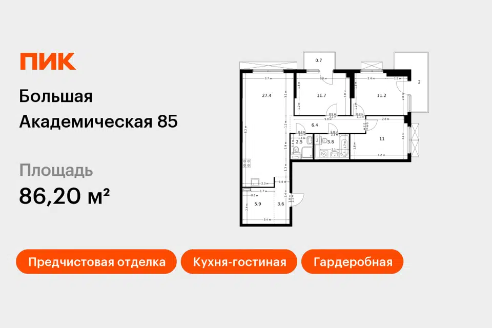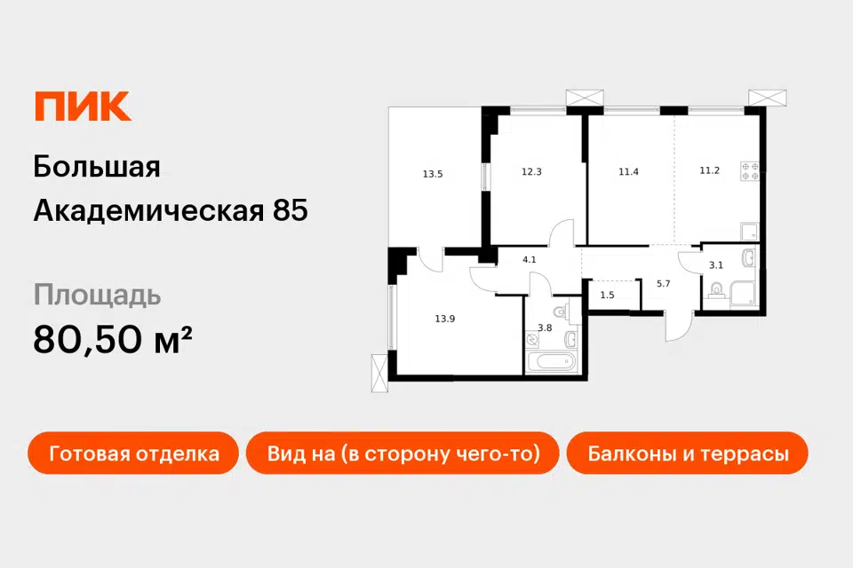 3-комн. кв., 85.8 м², 3/5 этаж