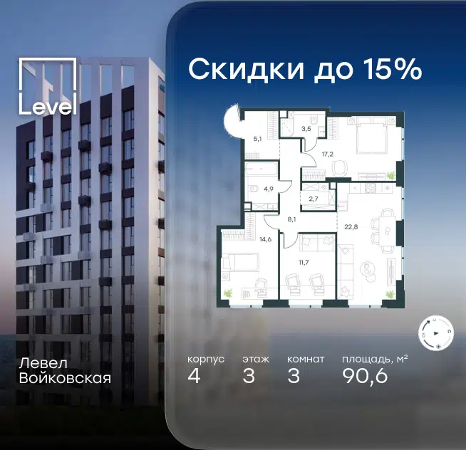 Купить трехкомнатную квартиру в Москве в районе Войковский