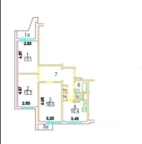 3-комн. кв., 80 м², 7/12 этаж