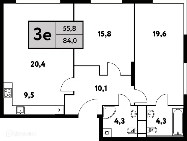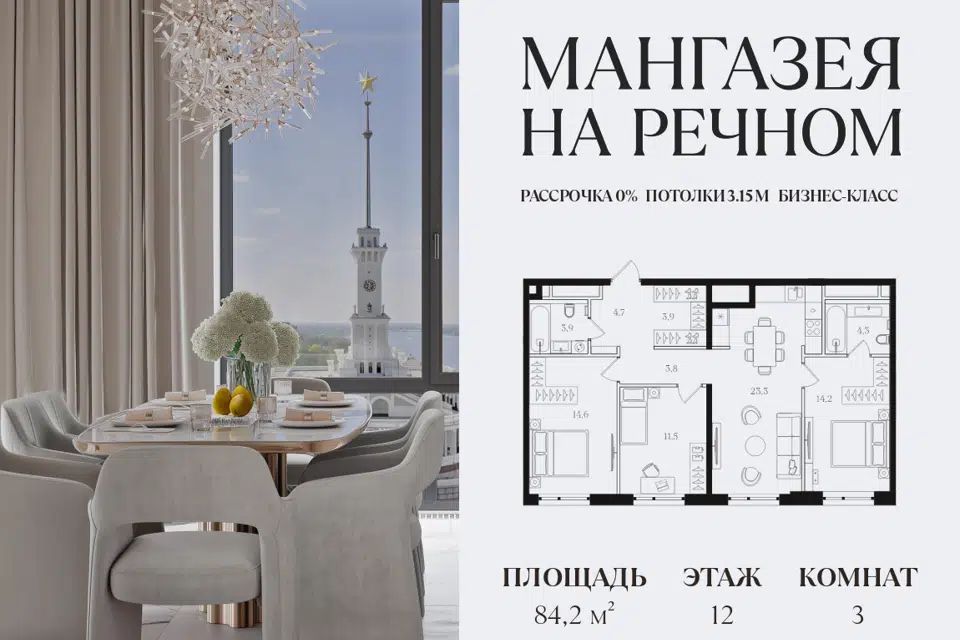 3-комн. кв., 84.2 м², 12/12 этаж