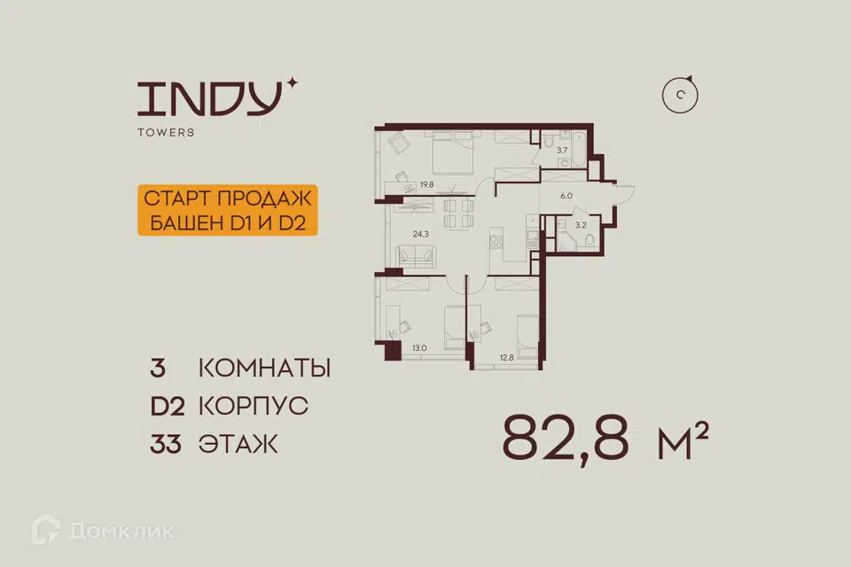 3-комн. кв., 82.8 м², 24/55 этаж