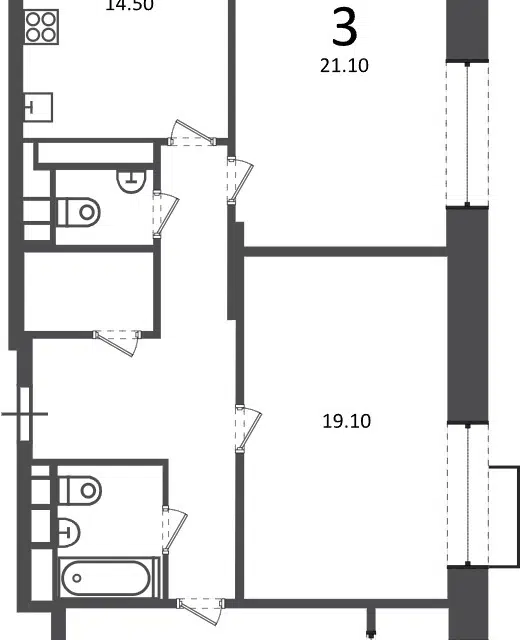 3-комн. кв., 73.6 м², 21/26 этаж