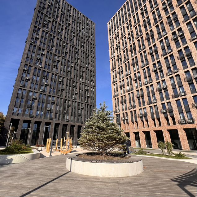 Для удобства жителей предусмотрен подземный двухуровневый паркинг с опцией зарядки электромобилей, коворкинг, фитнес-зал, детская игровая, кинозал и уютные зоны отдыха.