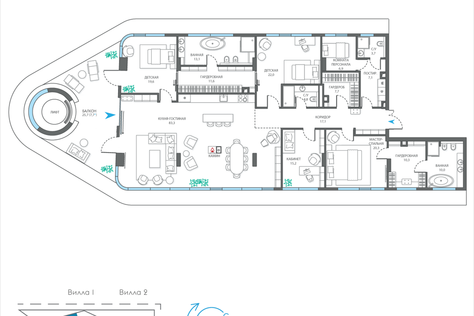 3-комн. кв., 183.5 м², 5/7 этаж