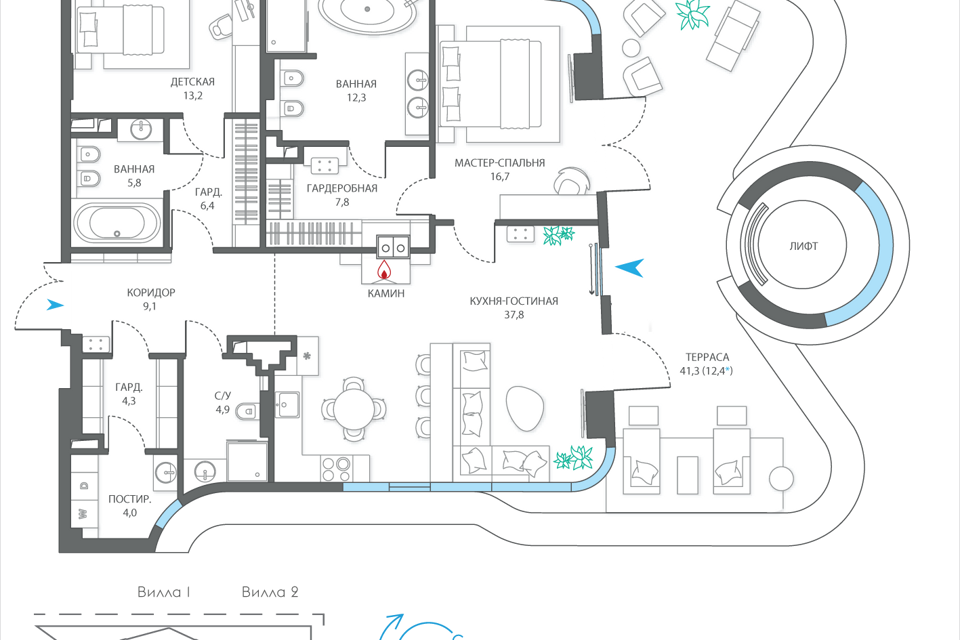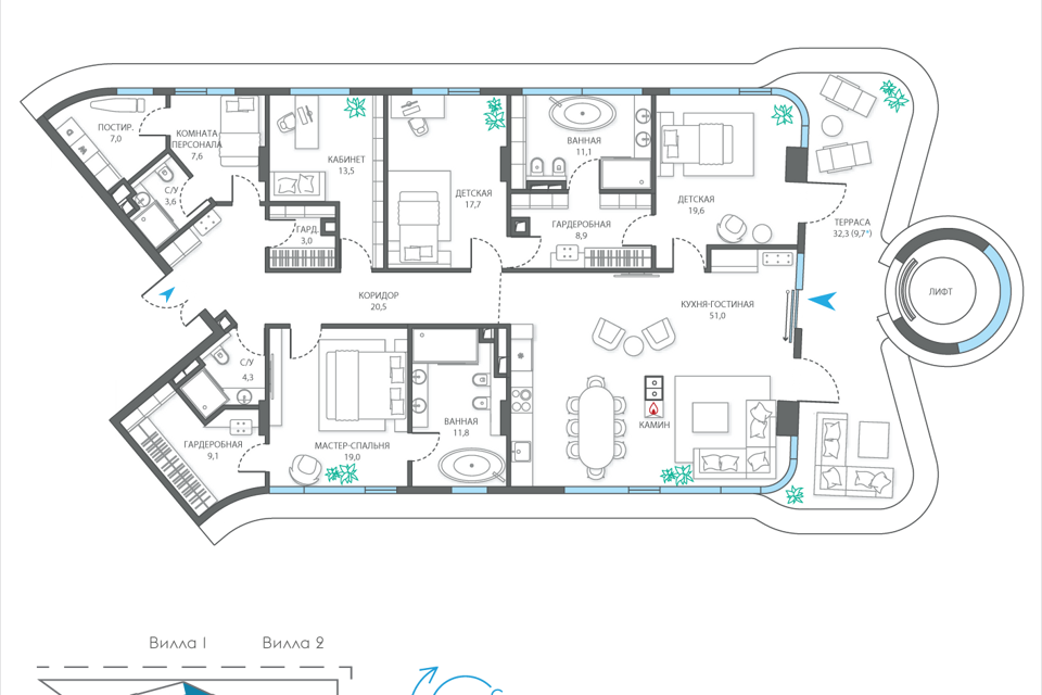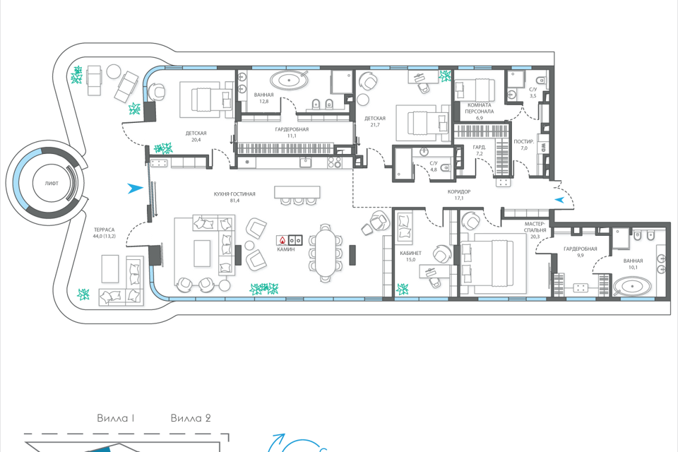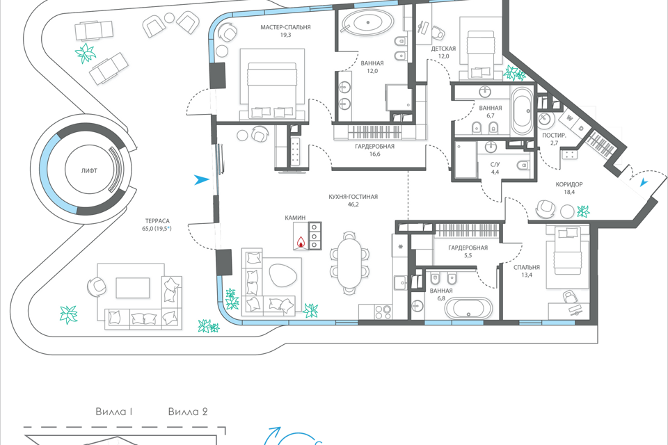 3-комн. кв., 182.8 м², 4/7 этаж