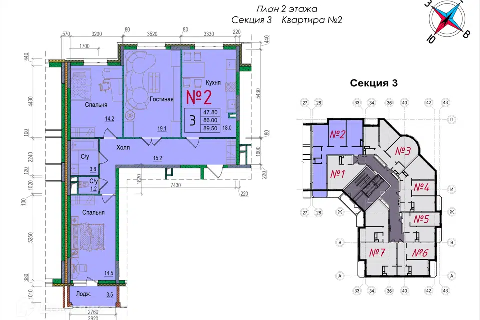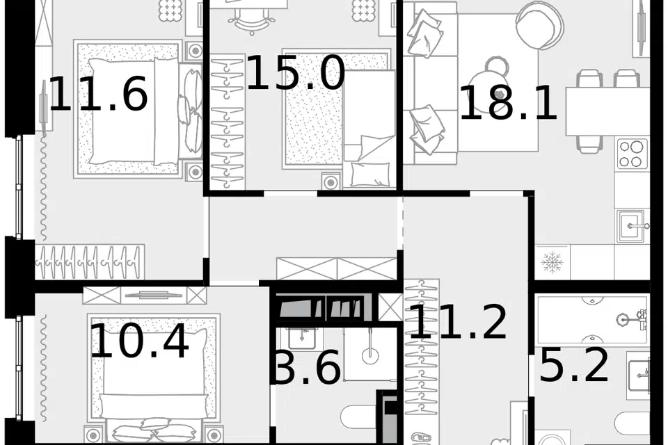 3-комн. кв., от 89.1 м², 4-11 этажи