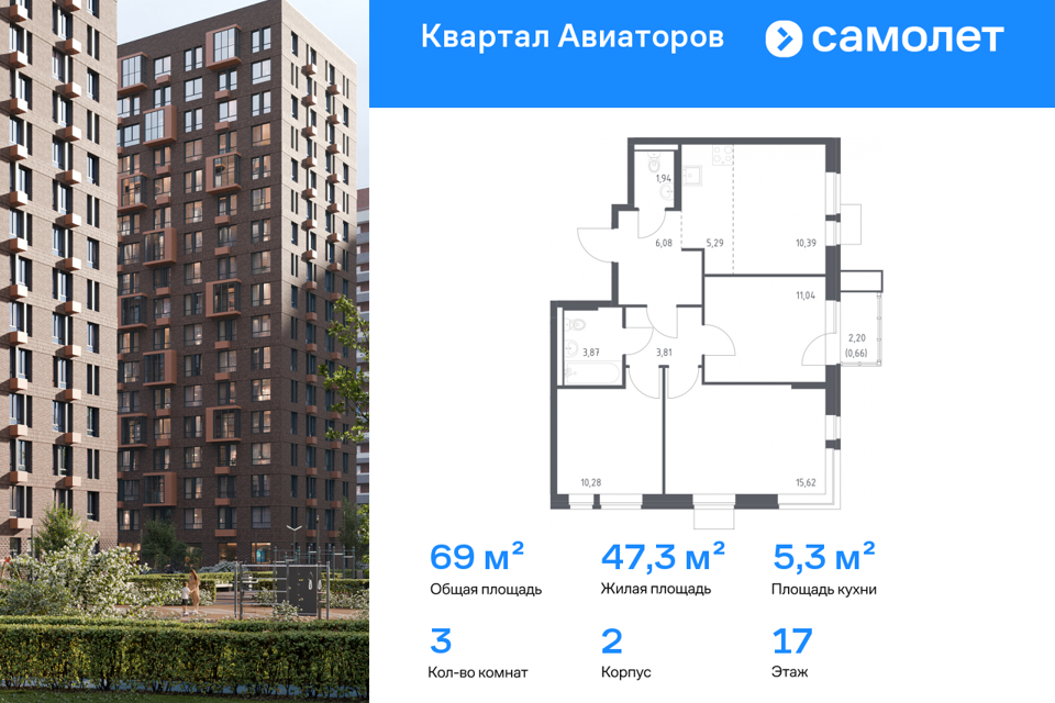 3-комн. кв., от 69.2 м², 2-3 этажи