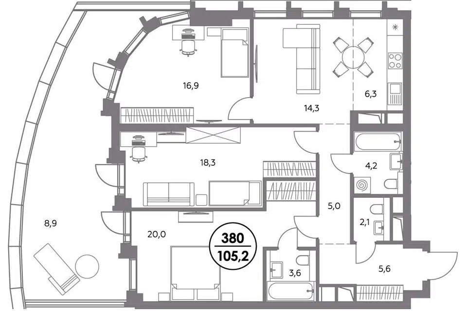 3-комн. кв., 116.2 м², 6/20 этаж