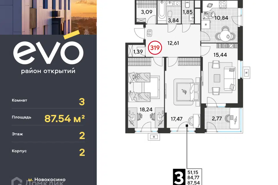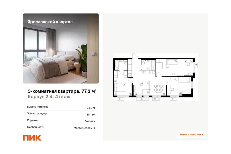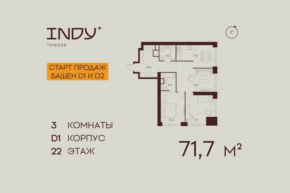 3-комн. кв., от 71.7 м², 22-24 этажи