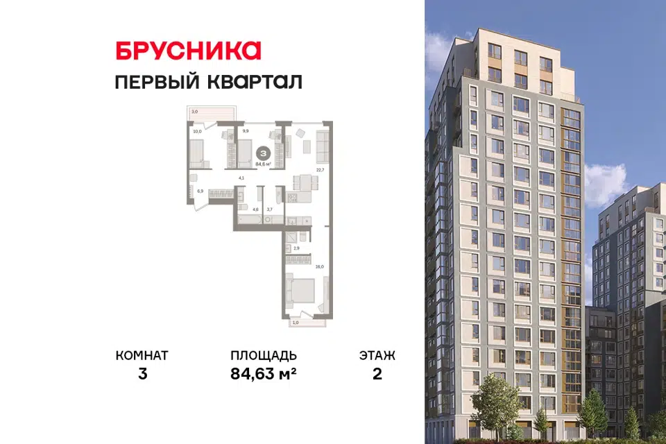 3-комн. кв., от 84.63 м², 2-8 этажи